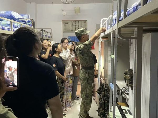 为切实做好军训期间的宿舍管理工作,营造良好的生活环境,晚上,教官前往学生宿舍开展军训内务考核,从地面墙壁、床铺被褥、物品摆放、室内空气等几个方面进行检查。经检查大部分宿舍较为干净整洁,但仍有小部分宿舍卫生不太符合标准,学生们在教官的指导下积极进行整改。