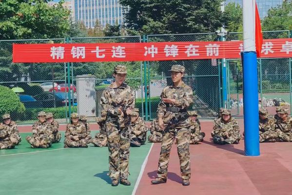 烈日下,操场中,方阵间,青春风采完美彰显。伴随教官一声令下,文法学子迅速行动。回顾之前学习的内容后,大家在教官的带领下学习了分列式行进、敬礼、卧倒、匍匐前进和军体拳等动作。教官耐心地指导每一位四营七连的学生,亲自示范卧倒和匍匐前进等动作,以幽默风趣的话语为学生讲解动作的细节与要领。学生们跃跃欲试,以饱满的热情和昂扬的斗志投入到训练之中。