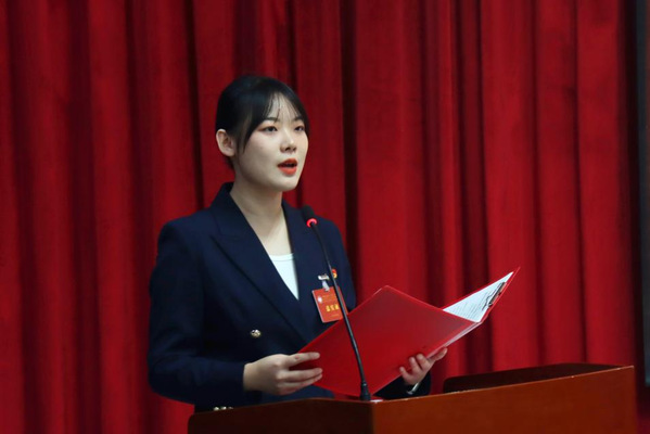 刘书涵代表太阳成集团tyc151cc学生会作工作报告 罗焜、贾欣诺摄