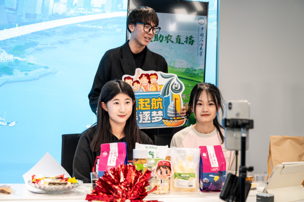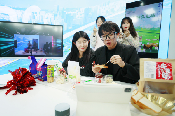“3,2,1,上链接!”“公主、王子请试吃!”……直播间内,大学生“主播”绘声绘色地推介10余种来自内蒙古草原科左后旗的特产美食,耐心地为网友们讲解口感风味、生产过程、文化特色等,将直播间的助农产品全方位介绍给观众。“直播间人数突破50,我们就给大家唱首歌!”“发际线与我作队”的官静利用文艺特长积极提升人气,很快直播间人数就达到预计目标。“走过路过不要错过,再下一单,我们给直播间的家人们抽奖,福利多多。”“风雨无阻队”的两名成员巧妙结合抽奖活动提升直播间销售额。汉语2201班班长孙熙谌带领全班同学组成“绝队”参与此次直播助农活动,她一边向直播间内的观众介绍产品,一边有序组织其他队员出镜。值得注意的是,“筑梦智富队”邀请在科左后旗支教的第25届研支团志愿者李庆喆来到直播间,她的支教经历生动地向直播间观众展现了在帮扶政策下当地经济所焕发的新生机。
