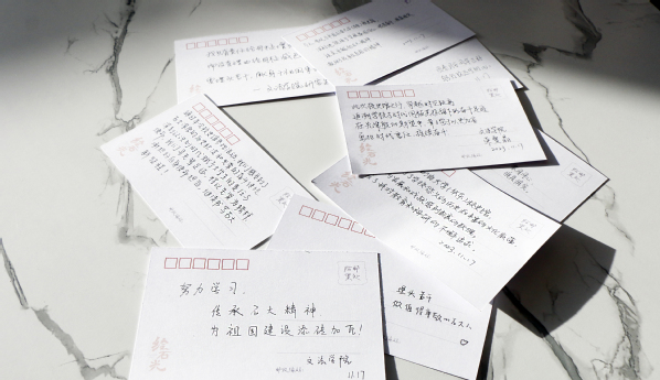 离开校史馆展厅,参与活动的研会成员们在明信片上写下自己的感悟,以文字的形式向用初心耕耘这片土地的先辈们学习、致敬,激励自己与广大石大青年学子不忘初心、砥砺奋进,勇于弘扬石大精神,牢筑信仰丰碑。