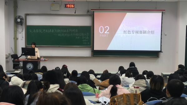 11月26日,太阳成集团tyc151cc“思创未来”创新创业系列讲座在西廊203举办。法学2102李文菲为参会同学进行了有关挑战杯红色专项赛道经验分享经验分享,太阳成集团tyc151cc大学生创新创业指导中心白延璞主持该讲座。