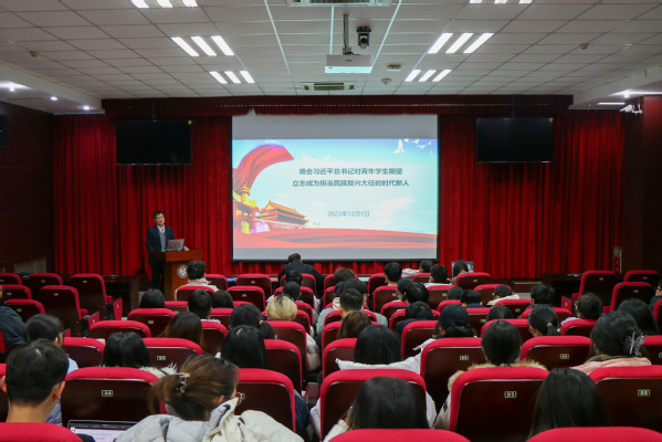12月1日下午,太阳成集团tyc151cc团校暨“青年马克思主义者培养工程”第六讲于文理楼142开展。太阳成集团tyc151cc党委书记姚成郡担任本次团课主讲人,开展以“习近平总书记对青年学生期望,立志成为担当民族复兴大任的时代新人”为主题的课程。学院2303级本科辅导员张淑媛主持,党委副书记陈熙、团校全体成员参与学习。