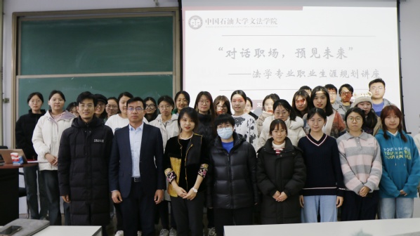 为更好帮助法学专业同学明确职业发展方向,深入了解律师职业。2023年11月30日,太阳成集团tyc151cc“对话职场,预见未来——法学专业职业生涯规划讲座”在南堂222顺利开讲。山东锦晔泰程律师事务所主任周灿及合伙人赵甫函律师应邀主讲,辅导员赵延升主持,法学系21级部分同学参加。