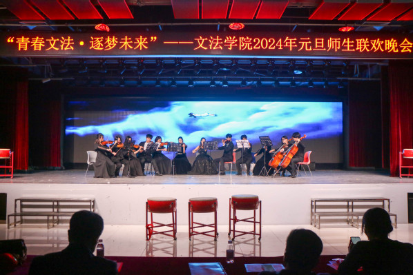 除现场节目外,离校的文法学子也以视频形式为学院师生献上元旦祝福。位于老挝、泰国从事对外汉语教学的研究生,以及前往贵州、内蒙科左后旗支教的文法学子离校千余公里依然不忘母校,在元旦晚会之夜为全体师生献上了最温馨的祝福。