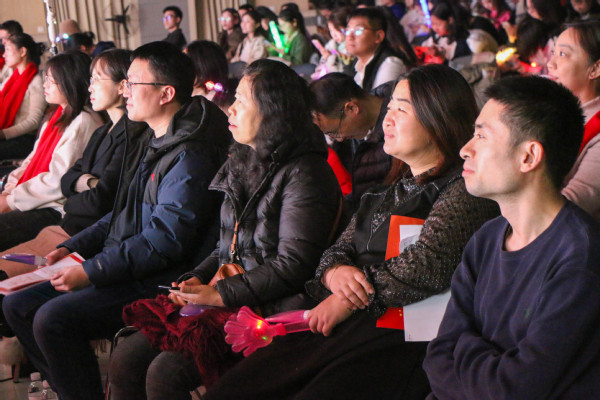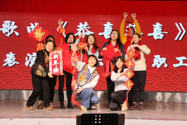 晚会迎来第二篇章,音乐系教职工们带来歌曲《恭喜恭喜》。欢悦响亮的歌声,活力满满的舞蹈,一遍又一遍的“恭喜恭喜”,浓浓的新年气息充满了整个唐岛湾会场,观众们手挥荧光棒,自觉加入到歌曲的演唱中。