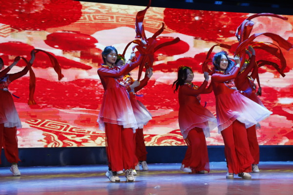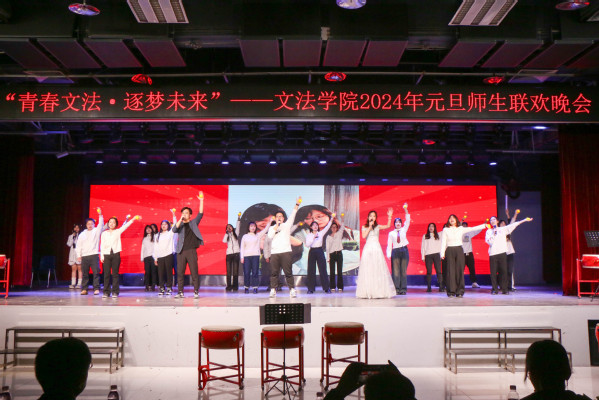 一路欢歌,一路笑语;一路憧憬,一路欣喜。怀着美丽的憧憬,带着新年的期盼,在序幕《张灯结彩》的表演中,晚会第一篇章正式开始。法学2301班带来的集体舞蹈《舞动青春》紧跟时代潮流且花样频出,活力四射的舞蹈充分展现出文法学子积极向上的精神面貌,赢得场下观众阵阵喝彩。