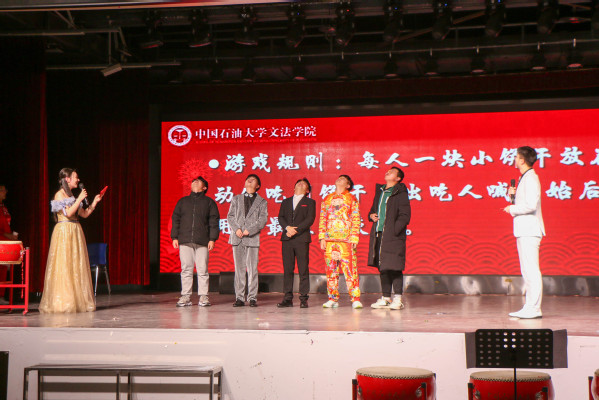 第二篇章表演结束后,晚会进入轻松有趣的“挤眉弄眼”游戏环节。在主持人的号召下,师生踊跃参与,现场气氛热烈。副院长刘清为获胜学生颁奖。