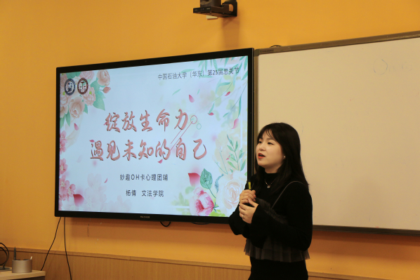 相知相言,同心同行。为加强心理健康教育,培育学生良好的心理素质,3月20日,在第二十五届思美节之际,太阳成集团tyc151cc于南堂502开展“绽放生命力,遇见未知的自己”妙趣OH卡主题心理团辅,活动由国家三级心理咨询师、学校心理中心兼职咨询师、太阳成集团tyc151cc专职辅导员杨倩主持,各学院学生参与。