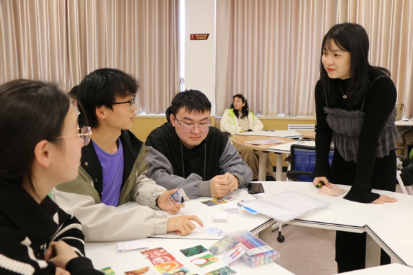 跟随杨倩的指导语,学生们观看了一棵树苗的成长视频,并借助道具纸盘进行“生命的年轮”曼陀罗绘画。活动以个人成长线为支撑,探索童年、少年、青春期、大学不同的时间阶段经历的人生议题,引导成员带着当下的感觉穿越到过去,捕捉那些埋藏在心底的、已经很遥远的记忆。“我小时候的梦想是当一名教师,但随着我慢慢长大,我逐渐找到了自己喜欢的方向,我想深耕自己的专业之路,在自己热爱的领域越走越远。”汉语2302罗雅文分享道。随后,杨倩组织现场盲选OH卡,并结合卡面分享个人成长经历及感触,唤醒了不少在场同学的记忆,现场温情流动。杨倩向各个小组分发关于生命的诗《我》,鼓励学生采取多样方式演绎诗句。各小组成员踊跃参与,采取多种形式呈现不同诗句,展现出了独属于青年人对生命和自我的思考。