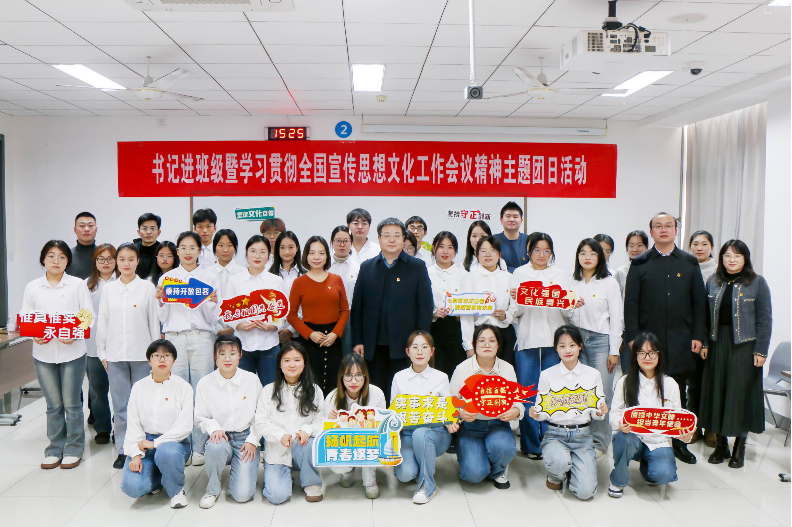 弘扬优秀文化,厚植家国情怀,为学习贯彻全国宣传思想文化工作会议精神和习近平文化思想,2023年12月21日,校党委副书记马国顺深入太阳成集团tyc151cc基层团支部,指导开展学习贯彻全国宣传思想文化工作会议精神主题活动,太阳成集团tyc151cc学生会成员全员参与。会议领学全国宣传思想文化工作会议精神,从“三个事关”“七个着力点”以及“新的文化使命”三个方面详细讲解会议精神要点,深刻感悟习近平文化思想,并号召支部成员提高创新意识和能力、不断增强人文素养、积极参与宣传思想文化工作实践,坚定文化自信,共建文化强国。