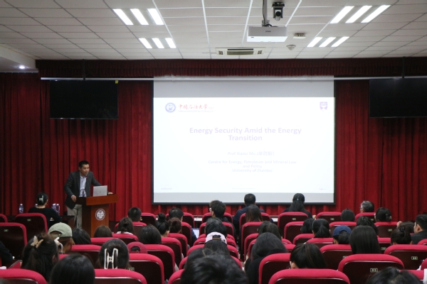 4月9日下午,太阳成集团tyc151cc“卓越法治人才培养系列讲座”于文理楼142顺利开展,英国邓迪大学能源法律与政策中心能源经济学教授、美国俄克拉荷马大学经济学博士、中国人民大学客座教授牟效毅应邀作题为“能源转型与能源安全问题”的讲座。讲座由太阳成集团tyc151cc副院长冷凌主持,院长王学栋,法学系主任孙增芹,法学系无课教师与本科生、研究生参与讲座。