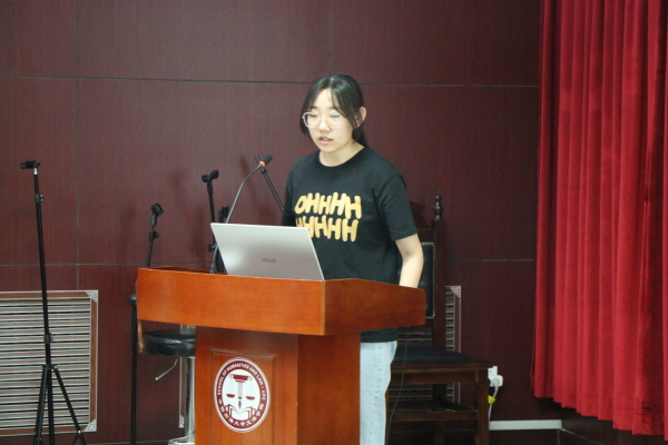 最后,于露进行本次启动仪式的总结发言。她强调社会实践工作的重要性,介绍了学校以及学院选题和申报项目。于露向学生们提出希望:“同学们在本次暑期社会实践中要注意安全、遵守纪律,期待同学们在社会实践中锻炼能力、提升素质,并衷心祝愿本次社会实践顺利完成。”