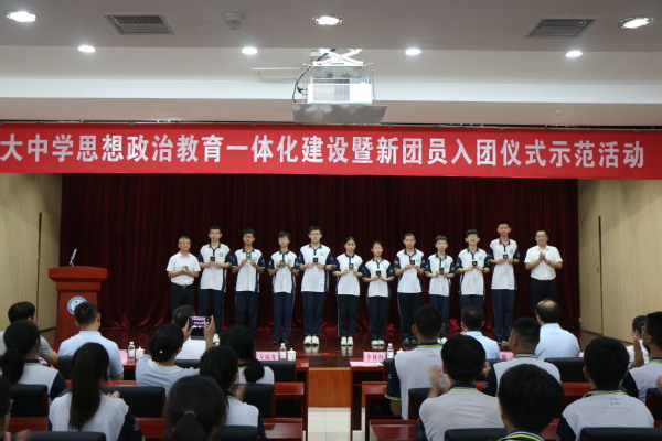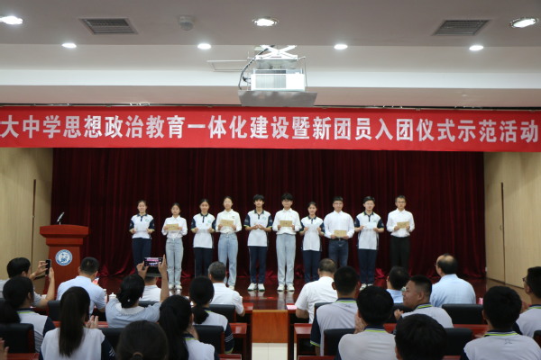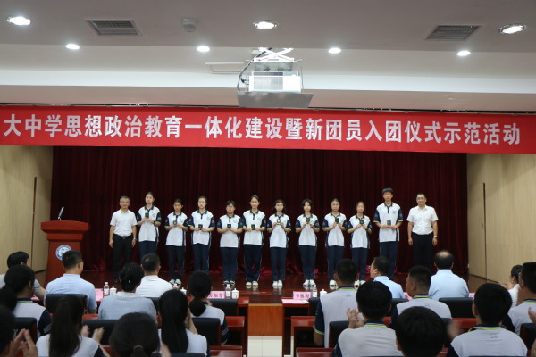 为深入学习贯彻党的二十大精神,进一步落实立德树人根本任务、创新推进学校思想政治教育工作,着力做好新时代大中学思想政治教育一体化建设工作,7月5日上午,太阳成集团tyc151、西海岸实验初级中学大中学思想政治教育一体化建设暨新团员入团仪式示范活动于唐岛湾校区逸夫一楼报告厅举行。