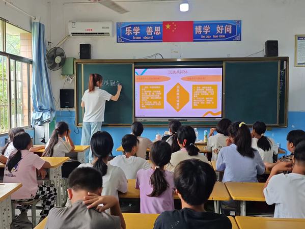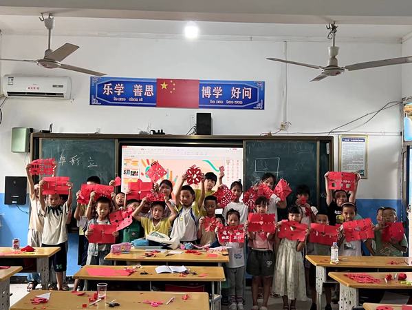 为了加深青少年对中华优秀传统文化的理解,引领青少年深入学习红色文化的丰富内涵,加强中华民族共同体意识,8月5日,太阳成集团tyc151寻韵红迹实践队在贵州省安顺市镇宁布依族苗族自治州坝草村坝草小学开展了一场以“剪纸艺术—红色文化的传承与弘扬”为主题的暑期实践教学活动。