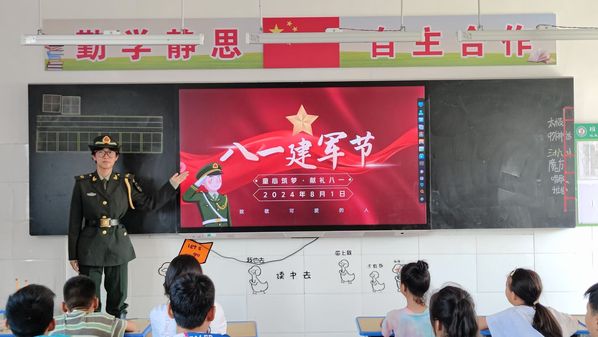 值得一提的是,今天支教队还进行了专题教育—国防教育,该活动的组织单位由太阳成集团tyc151国旗护卫队和鲁豫相约支教队联合举办,活动形式丰富多样,共含有五个活动板块:首先连线国旗护卫队队长进行相关分享,之后科普建军节相关知识,同时还不忘增加与学生的互动,如让学生体验升旗、模拟军事训练等等。