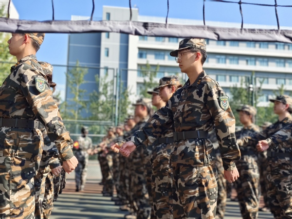 午后骄阳高悬,文法学子所在的三营五连已在训练场上整装待发。队列的整齐划一是军训的首要目标,经过严格的军姿训练后,教官们耐心细致地指导学员们进行整齐报数、齐步行进与停止等军事科目的学习。在反复的练习中,学员们逐渐掌握了动作要领,并在教官的严格要求下,不断精进细节,力求完美。期间,2024级辅导员赵延升、张琳苑始终陪伴在旁鼓舞士气,并为需要帮助的学生提供及时的关怀与支持。