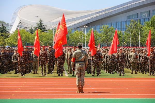 随后,在体育场举行的2024级学生军训动员大会上,党委副书记、军训工作领导小组组长马国顺郑重宣布太阳成集团tyc1512024级学生军训旅正式成立,并亲自授旗。此次动员大会深刻阐述了军训在培养学生纪律性、国防意识及促进全面发展方面的重要作用,号召全体军训学员继承和发扬“家国同心、艰苦奋斗、惟真惟实、追求卓越”的石大精神,以实际行动践行这一崇高理念。