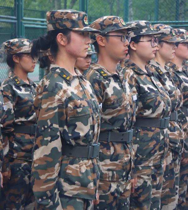 今日训练以队列队形为主,学生们在一遍又一遍的反复练习中,不断精进着分列式会操的相关项目。“向右看——”教官的口令指示下,是文法学子铿锵的脚步声。