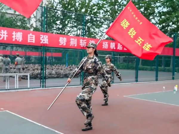 “巾帼不惧烈日,少年笑对骄阳。”从一开始的摇摇晃晃到现在的干脆利落,是青年人的热血在军训场上沸腾,是时间和汗水结成的辛勤的果实。我们期待着,经过军训洗礼后的文法学子能够在今后的日子里始终葆有青年人的蓬勃朝气,不惧困难、无畏挑战。