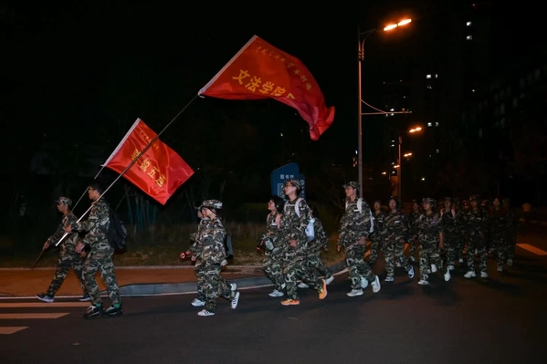 9月15日,夜间拉练结束后,文法学子经过短暂的蓄锐养精,又以更加昂扬的姿态投入到了新一天的训练中。
