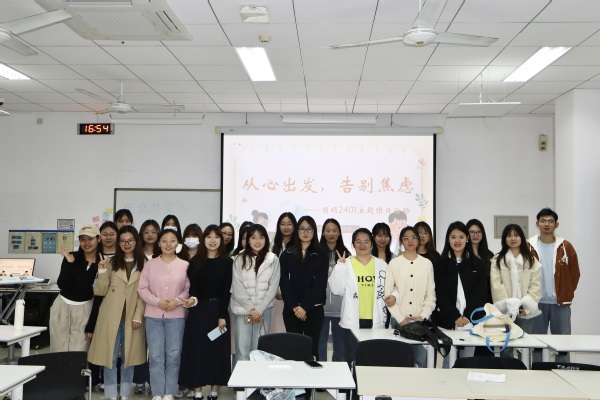 为了进一步推动我校学生心理健康教育,提升学生的心理健康素养,并引导他们增强维护心理健康的意识与心理调适能力,2024年11月6日,国硕2401团支部在综合楼A401举办了“从心出发,告别焦虑”的团日活动,太阳成集团tyc151cc辅导员于露、兼职辅导员栾雯晶出席本次活动。
