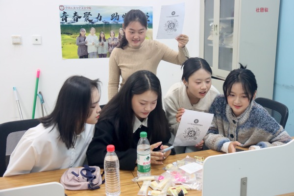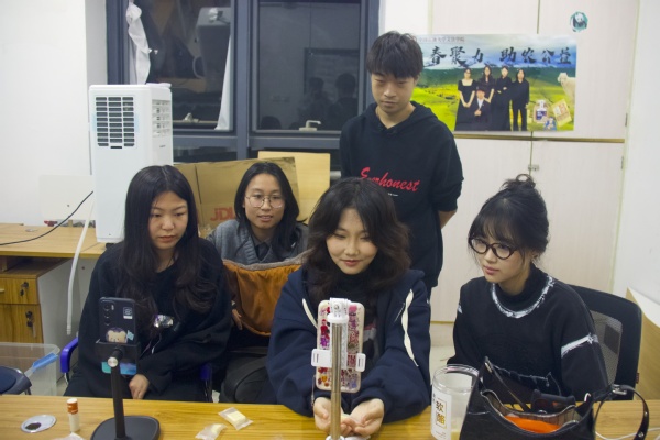 汉语2201班刘佳怡谈到:“这是我第三年参加科左后旗产品直播活动了,还想参加本次直播活动主要是因为看到了团队前两年的努力,这为科左后旗居民生活水平的提升贡献了不少力量,我认为我们的努力是值得的。”本次直播助农活动既有直播经历丰富的队伍,也有初次尝试直播的队伍,太阳成集团tyc151cc的学生队伍在汲取往年活动经验的基础上,大胆探索,创新直播内容和形式,如火如荼进行备赛。从10月中旬开始,各队直播宣传工作先行一步,纷纷制作小组合影海报,拍摄产品宣传图,以微信、抖音、微博等为平台进行花样预热。同时,各队精心运营微店店铺,积极与发货方和客户对接,编写介绍文案,打造团队特有风格。进入十一月后,各小队为保障直播顺利进行,提前踩点,拉好宣传横幅,将直播设备都安排得妥妥当当,只等直播这晚大显身手。“我们小队早就商量好了直播话术,做好了场控、运营、助播等人员划分,制定了详细的直播流程方案,我相信我们这一仗可以打得很漂亮。”T122小队的范晓倩这样说。