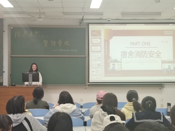 随后,罗雅文结合生活中的典型案例进行深入剖析,敲响警钟。在宿舍消防安全部分,她重点分析了违规使用大功率电器、插座超负荷用电等消防隐患的严重性,并详细讲解了常见灭火器的使用方法与火灾逃生的基本要领。她用真实的案例提醒大家,细小的疏忽可能带来严重的后果,因此每个人都应当从生活细节入手,自觉维护宿舍安全。她提到,“安全工作没有旁观者,我们每个人都是第一责任人。”