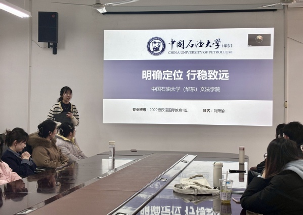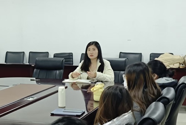 在两位学生的分享后,辅导员于露进行了总结发言。辅导员于露强调了在学术道路上的自我定位与不断思考的重要作用,她鼓励同学们要在积累的过程中保持思考,并根据自己的兴趣和优势明确未来发展的方向。