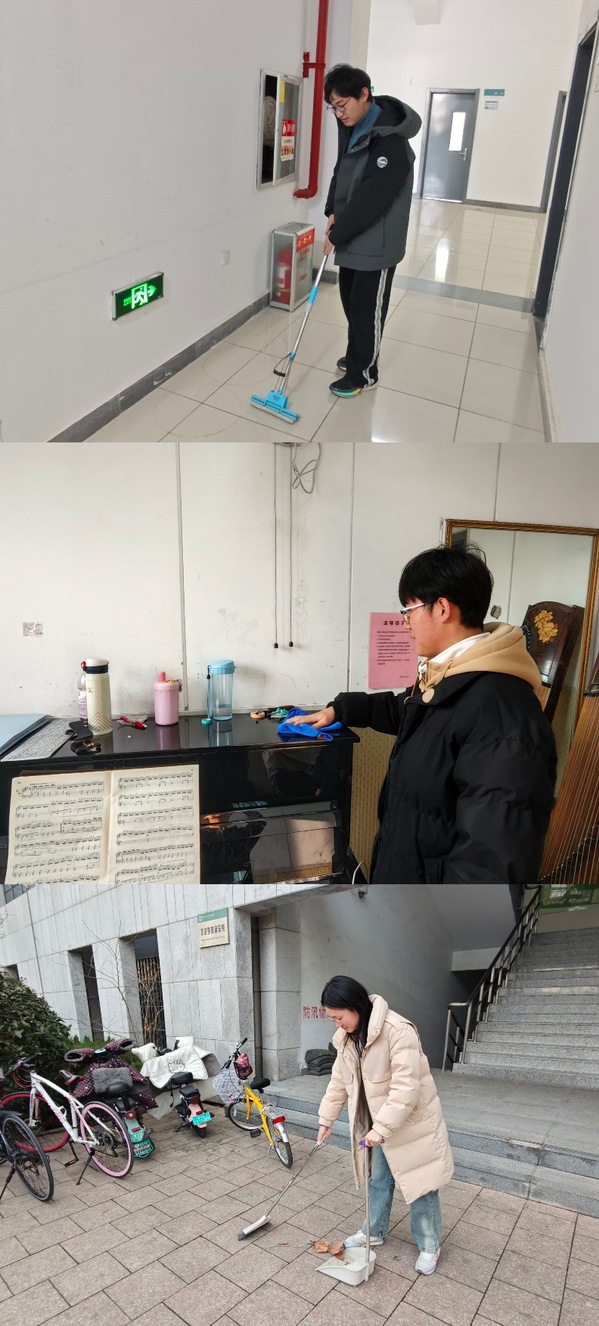 随后,支部成员来到音乐系,进入随机分组劳动实践环节。支部成员领取清洁工具后,迅速奔赴各自的责任区域,系里的走廊焕然一新……大家齐心协力,用实际行动生动诠释着对雷锋精神的深刻理解。劳动结束后,支部成员纷纷展示劳动成果,自豪地分享自己的感受。