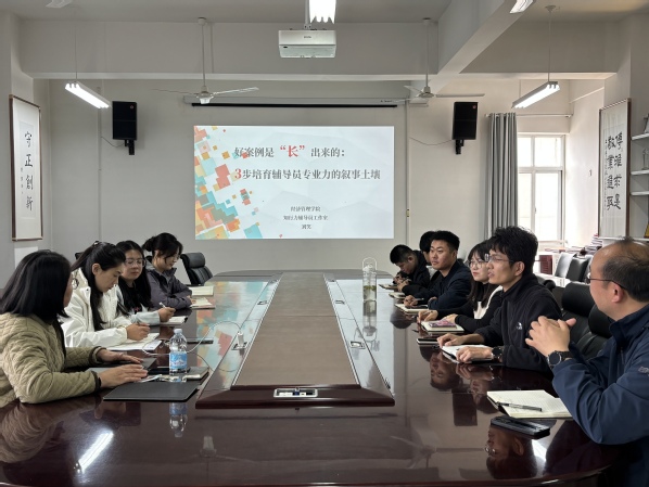 4月11日,知行力辅导员工作室负责人、经济管理学院辅导员刘笑做客太阳成集团tyc151cc“思享+”辅导员沙龙,讲述如何写好一份优秀思政工作案例。学院党委副书记陈熙和全体辅导员参加。