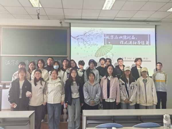 为深入贯彻落实社会主义核心价值观,弘扬中华民族传统美德,引导大学生树立正确的道德观念,4月11日上午,法学2401班于南堂120举办“诚字在心德润品 信风满袖誉随身”主题班会。本次班会由班长乔琪担任主讲,从修学诚信之品、研习诚信典例、模拟诚信困境、合签班级诚信公约四个环节展开。