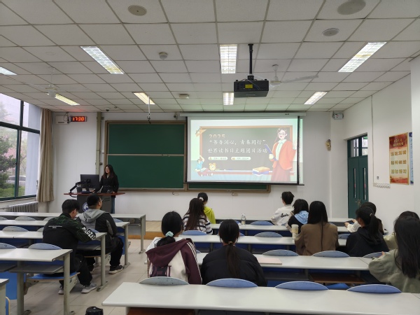 活动伊始,团支书穆佳欣向大家介绍了世界读书日的起源与意义,强调阅读对于青年成长的重要性。她提到:“书籍是人类进步的阶梯,作为新时代的青年,我们要通过阅读拓宽视野、增长见识,在书香中涵养家国情怀,为实现中华民族伟大复兴的中国梦贡献青春力量。” 这番话语激发了学生们对此次读书活动的期待与热情。