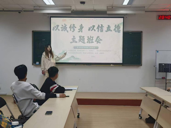 班会伊始,班长站在讲台前,以铿锵有力的话语强调诚信作为人类普遍道德要求的重要地位,并从《论语》中“民无信不立” 的古训出发,深入浅出地阐述诚信的内涵,为整场班会奠定了庄重而深刻的基调。