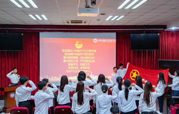 此次活动在全体人员合唱《光荣啊,中国共青团》的激昂歌声中落下帷幕。入团仪式结束后,学院为新团员开展入团第一课,马克思主义学院副教授郎帅通过讲解青年人如何平衡宏大叙事与个人成长,进而在新时代的大背景中放飞青春梦想这一课题,引导新团员了解共青团历史,坚定理想信念,并推动其成为有理想有志向的奋斗青年。