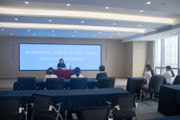 参观活动结束后,四级高级法官谷林平法官围绕涉外审判工作开展了专题讲授。他以青岛国际商事法庭的概念为切入点,深入讲解了涉外审判的特点与难点、涉外案件审理中涉及的管辖、法律适用以及域外法查明等专业问题,并着重强调了涉外审判判决书的书写要点。讲座结束后,谷林平法官和王晓琼庭长耐心细致地解答了师生提出的问题,并针对涉外法治人才的培养给出了极具价值的建议,为同学们消除了许多专业疑虑,也明晰了许多同学们未来择业的疑惑。