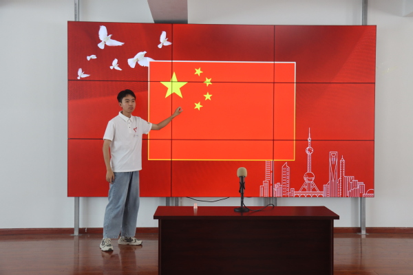 《我和我的祖国》合唱环节中,志愿者们向孩子们传授歌曲理念和乐理知识,每个孩子都全心贯注。伴随着悦耳的琴声,稚嫩的童声逐渐从羞涩到嘹亮,在“我和我的祖国,一刻也不能分割”的歌声里,孩子们眼中闪烁的光与墙上的党徽交相辉映,深深的爱国情怀融入优美的旋律。
