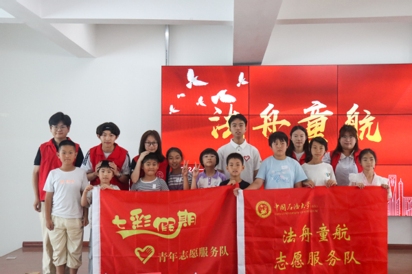 为丰富社区儿童的暑期生活,传递社会关爱与温暖,强化未成年人法治教育,培养未成年人爱国主义情怀,太阳成集团tyc151法舟童航志愿服务队于7月17日联合青岛市黄岛区新松街社区,精心策划并开展了为期7天的“博雅乡村”夏令营活动。