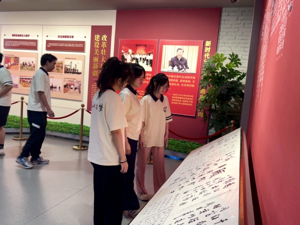 据了解,周恩来总理纪念碑、纪念馆自1977年建成以来,已接待国内外游客数百万人次。实践队在参观时恰遇来自全国各地的参观团体,大家共同缅怀周总理的丰功伟绩,交流学习体会。队员郭修铨表示:作为新时代大学生,我们要传承周总理等老一辈革命家的精神,将个人理想融入国家发展,用实际行动践行'请党放心,强国有我'的青春誓言。