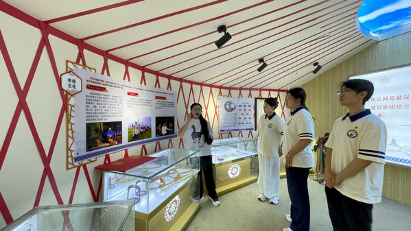 展馆内的实物展示区,同样藏着发展的密码。老式的办公用具、手写的工作记录,见证了基层工作从简单到规范的转变;曾经用于发布通知的设备,如今已被高效便捷的数字化社区服务平台替代。在“民族团结进步”主题展区,队员们驻足于蒙汉群众共同劳作、共同发展的影像资料前。实践队队员邢芸菡深有感触地说:“这些影像里的每一个场景,都是党带领各族群众团结奋斗的生动体现。正是这份团结,让科左后旗有了如今的发展面貌,也让我们对‘砥砺奋进’有了更真切的理解。”