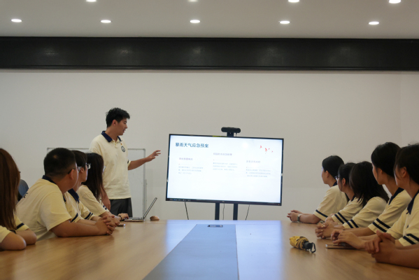 会议伊始,实践队队长林子雯结合近期全国多地发布的暴雨红色预警信息,强调了此次会议的重要性与紧迫性。她表示,当前雷暴大雨天气频发,极易引发城市内涝、道路积水、电力故障等安全隐患,作为深入基层开展实践活动的团队,必须提前做好防范准备,将安全意识贯穿实践全过程。