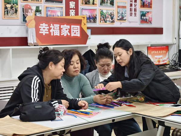 支部成员教居民做手工 李欣悦摄