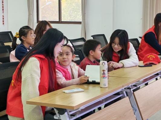 实践队员和小朋友互动 刘一诺摄