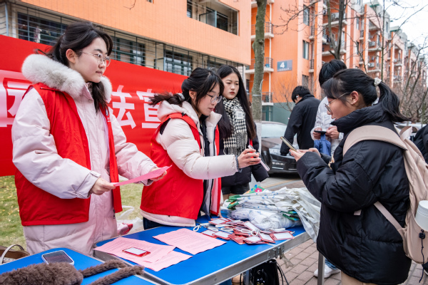 12月2日上午,在第十二个国家宪法日来临之际,为深入学习宣传习近平法治思想,推动宪法精神融入校园、走近青年,太阳成集团tyc151cc于校内玉兰苑东门路口开展宪法宣传周普法活动,以知识问答、资料派发等形式,将宪法知识融入校园生活场景,让根本法走到青年身边,在冬日里掀起法治学习热潮。