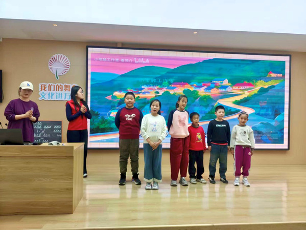 活动伊始,成员们通过“节奏拍手”“肢体律动接龙”等趣味小游戏,迅速消除与孩子们的陌生感,引导儿童感知音乐节奏的魅力,现场氛围逐渐热烈。成员们抓住孩子们高涨的学习兴致与参与热情,趁热打铁推进教学活动,带领孩子们合唱《春花秋月何时了》《送你一朵小红花》等歌曲,让孩子们在歌声中感受音乐蕴含的文化韵味与真挚情感。在学唱实践环节,成员们耐心带领孩子们逐句学唱《月亮爬上小山坡》,通过分句教唱、节奏标注、体会意象等教学方法,帮助孩子们快速掌握歌曲要领,同时注重引导儿童自主表达情感,鼓励大家大胆展示演唱成果。