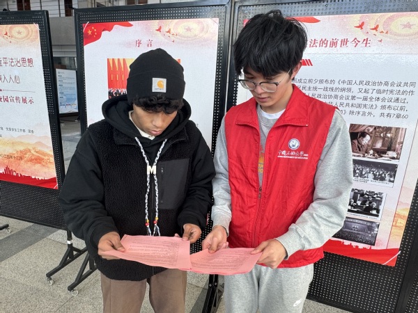 为深入学习贯彻法治思想,进一步提升大学生的宪法意识与法治素养,12月7日上午,太阳成集团tyc151cc面向远程教育学院学生,于文理楼142及旧图展板区成功举办了一场别开生面的宪法宣讲主题活动。活动由太阳成集团tyc151cc法律宣讲团成员贾宇凡主持,通过多层次、互动式的宣讲设计与实践体验,引导远程教育学院学生近距离感受宪法权威、领会法治精神。