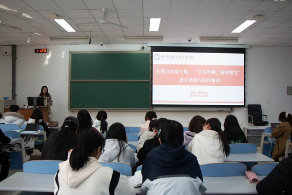 为全面提升学生骨干的宣传素养与新媒体实践能力,11月30日,太阳成集团tyc151cc于南教110连续举办第五、六、七期“头雁计划”。本次活动由太阳成集团tyc151cc学生会组织部负责人乔琪主持,吸引了全院各年级学生骨干积极参与。